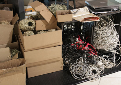 This installation serves as a metaphor for our struggle to communicate within our relationship. My husband’s assemblage of “stuff” – a tangled mess of cables and disassembled pc components are applied as media and as metaphor for broken communication.